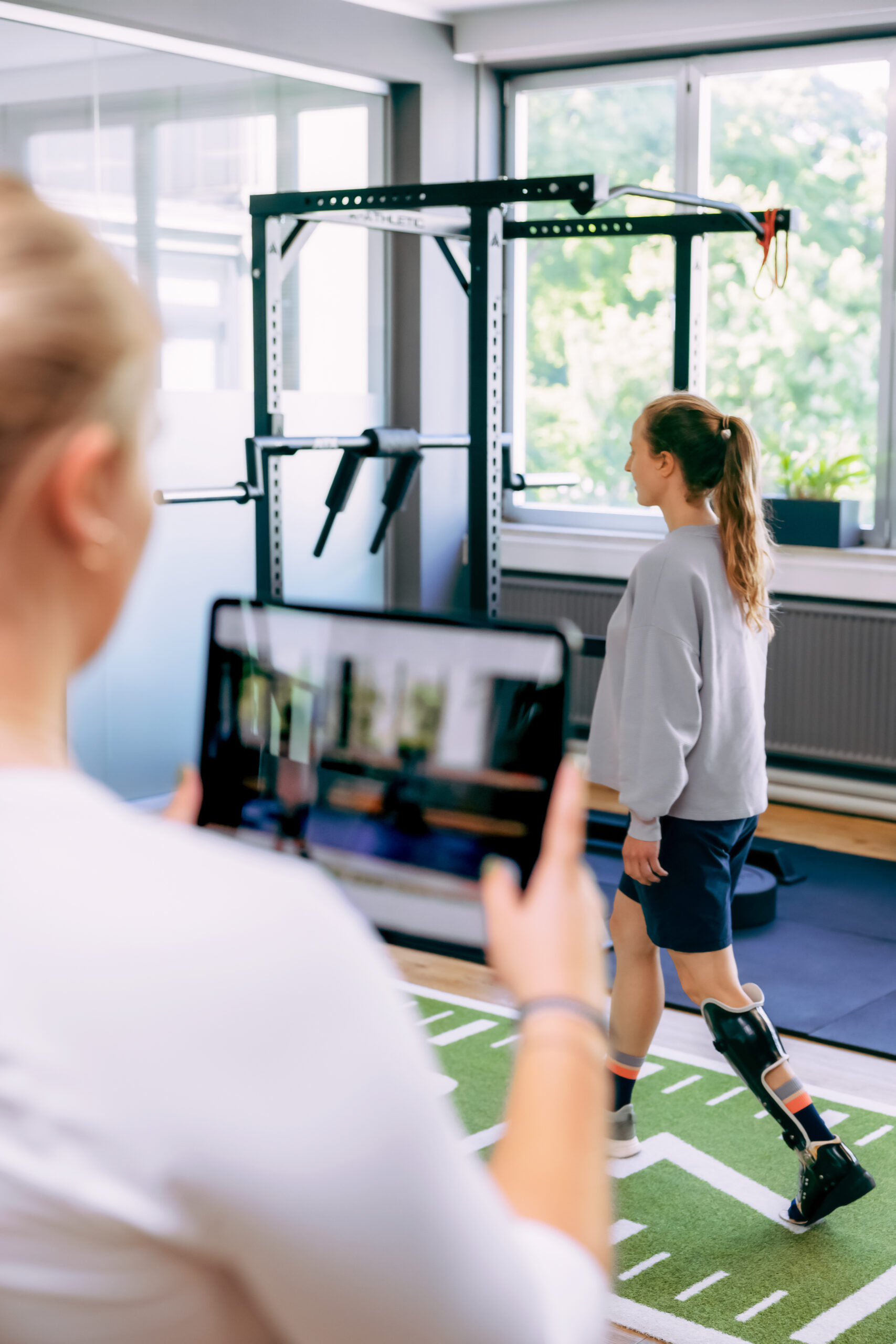 Du wirst gefilmt, während du gehst oder bestimmte Bewegungen ausführst, zum Beispiel Treppensteigen, Gehen mit und ohne deinem Hilfsmittel oder seitliche Bewegungen.